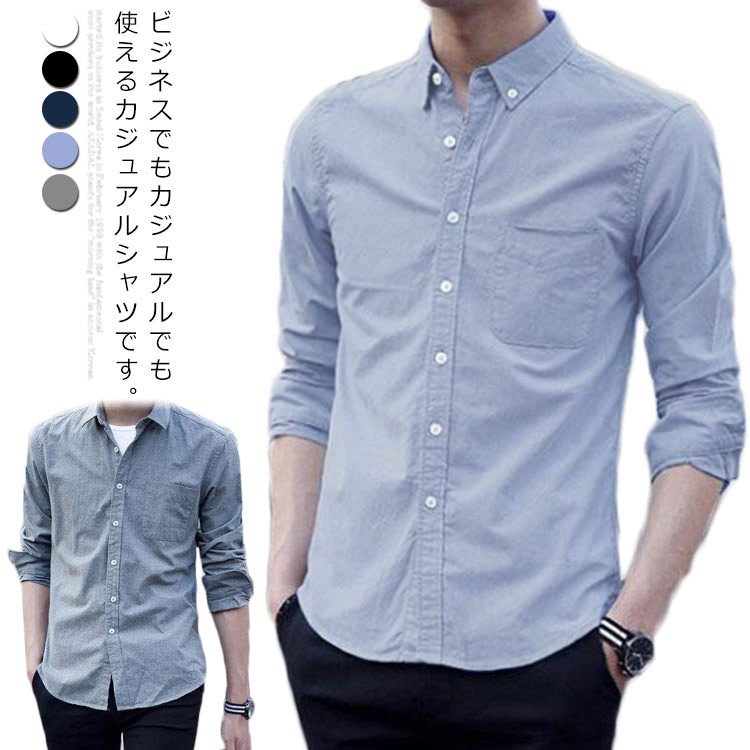 カジュアルシャツ メンズ シャツ 長袖 トップス シンプル ボタンダウン 通勤 ビジネス用 開襟 春秋物 紳士用 個性的 メンズファション 着痩せ