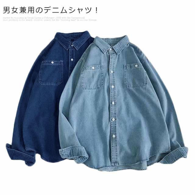 送料無料 デニムシャツ メンズ シャツ ブラウス レディース カジュアルシャツ メンズシャツ 長袖 男女兼用 薄手 大きサイズ 春秋