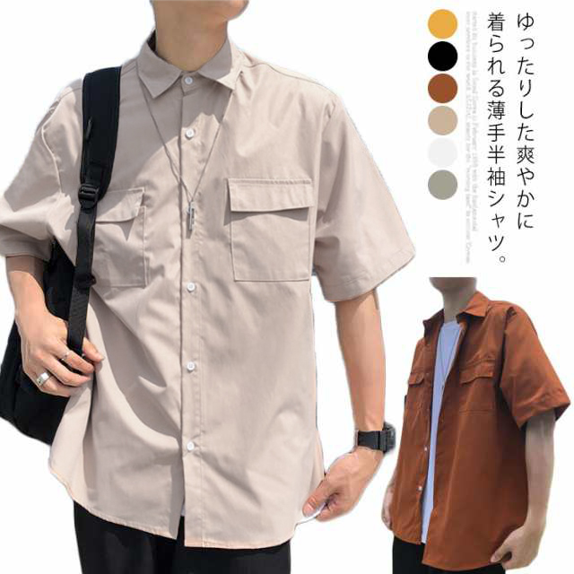 送料無料 シャツ 半袖 メンズ カジュアルシャツ 無地シャツ オーバーサイズ ゆるシャツ 薄手 シャツアウター 大きいサイズ ゆったり 着回せる お洒落 カジュアル 重ね着 トップス 半袖シャツ 春服 夏服