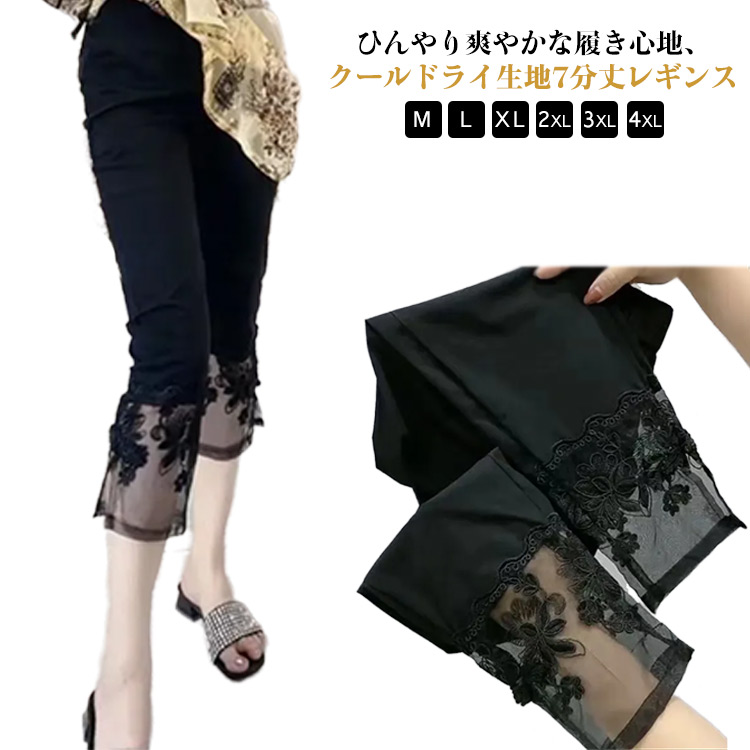 レギンス 夏 レディース 7分丈 花柄 ストレッチ 総レース 7分丈レースレギンス 涼しい 薄手 夏用 春夏 切り替え スパッツ タイツ ボトムス ウエストゴム 接触冷感 吸汗速乾 ドライ ひんやり シースルー 花柄レース 送料無料