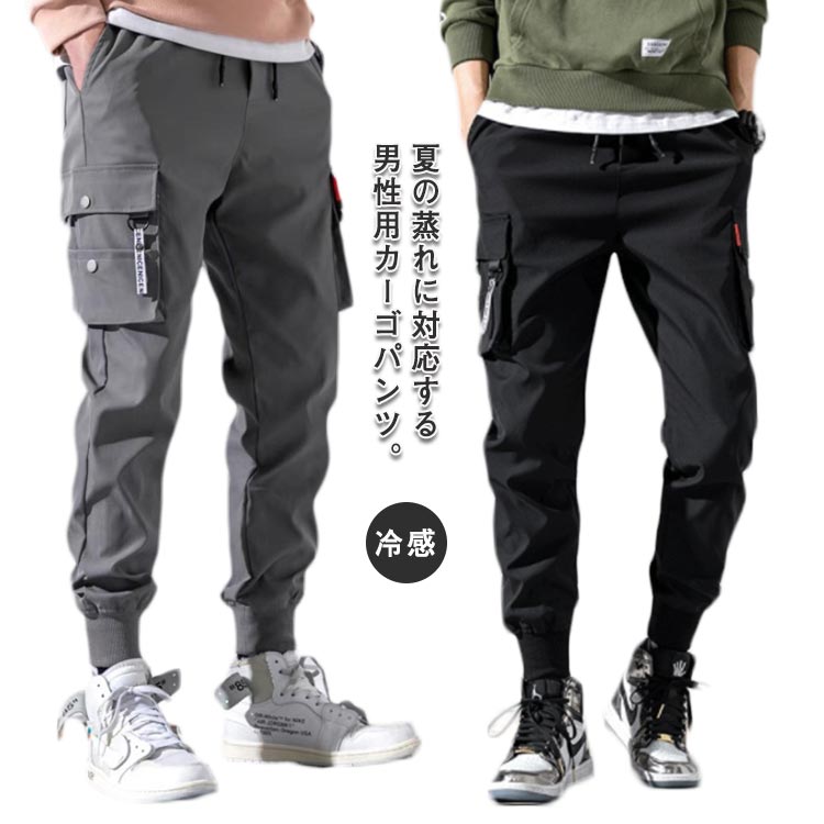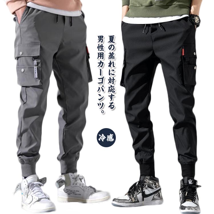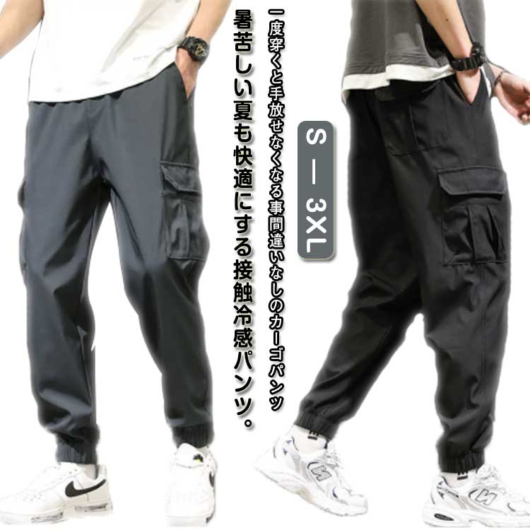 接触冷感 カーゴパンツ メンズ ロングパンツ 無地 夏 薄手 アイスシルク 涼感 ワークパンツ ジョガーパンツ 作業着 ひんやり 涼しい 冷感パンツ イージーパンツ ゆったり 大きいサイズ ロング丈 長ズボン ウエストゴム カジュアル おしゃれ 送料無料