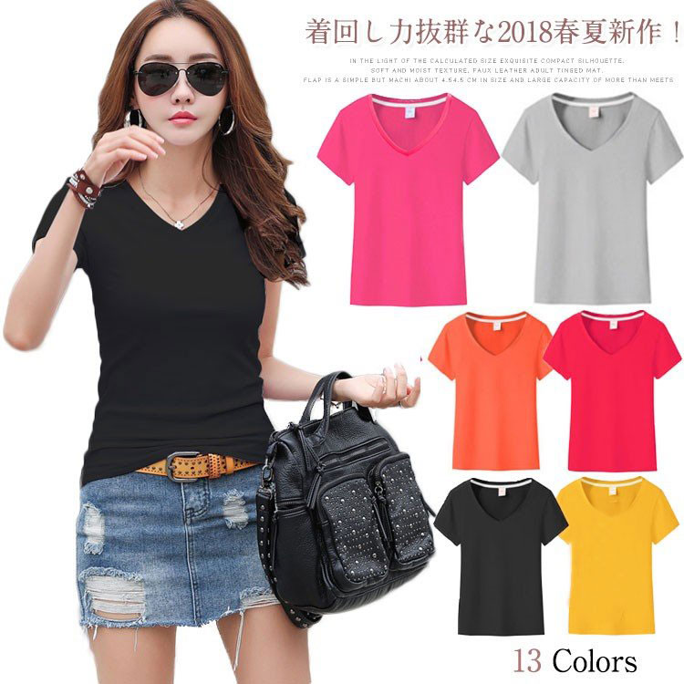 全13color!半袖 VネックTシャツ Tシャツ Vネック 半袖 レディース カットソー 半袖tシャツ Vネックカットソー トップス カジュアル 無