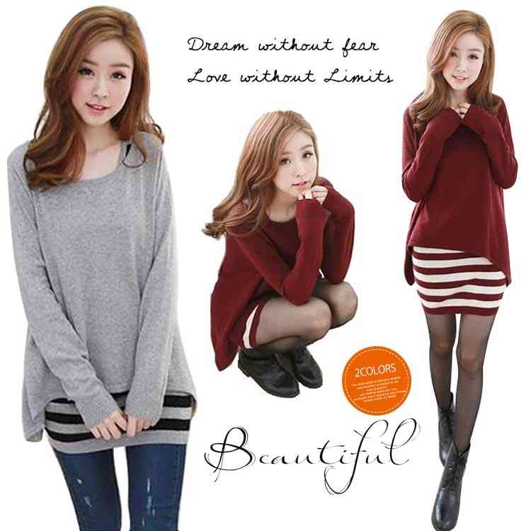 Tシャツ 長袖 韓国風 2点セット タンクトップ インナー レディース ゆったり 着痩せ ボーダー柄 ルームウェア 部屋着 シンプル カットソー