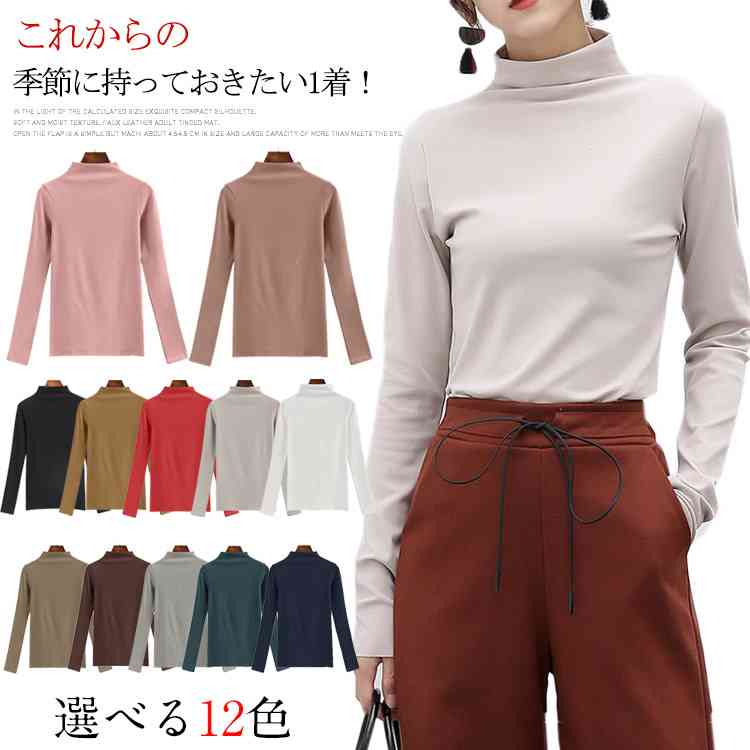 選べる放題で全12color展開!トップス ハイネック ストレッチ レディース ボトルネック カットソー tシャツ 長袖 シンプル 無地 伸縮性 ベー