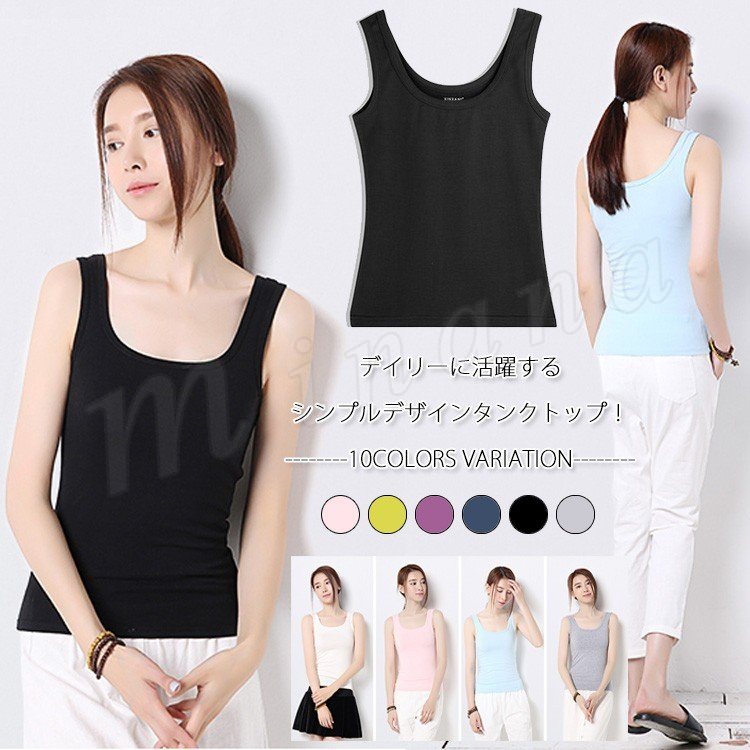 2020夏新作★タンクトップ キャミソール ベーシック インナー スポーツウェア シンプル 無地 ストレッチ 工字型 Uネック トップス 夏