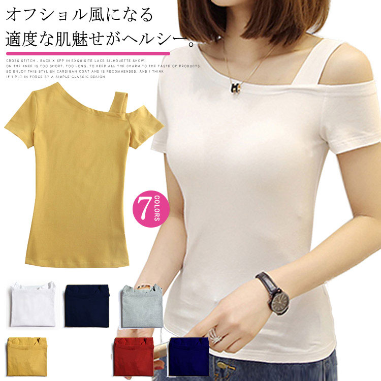 レディース tシャツ 肩出し ワンショルダー 大人 かわいい