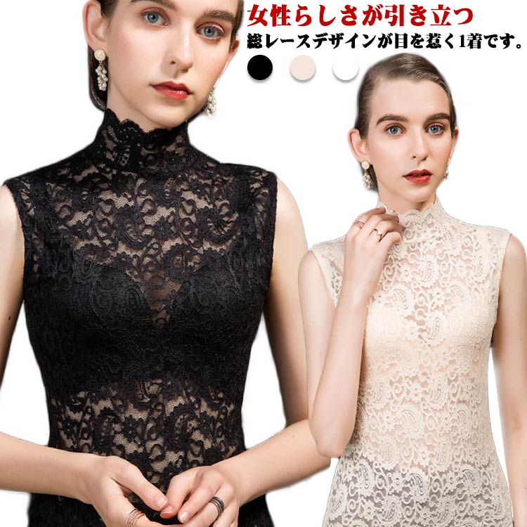ノースリーブ レーストップス タンクトップ レディース 大きいサイズ シアートップス トップス インナー レイヤード ハイネック シースルー 重ね着 20代 30代 40代 春夏 フェミニン S M L XL 2XL 3XL