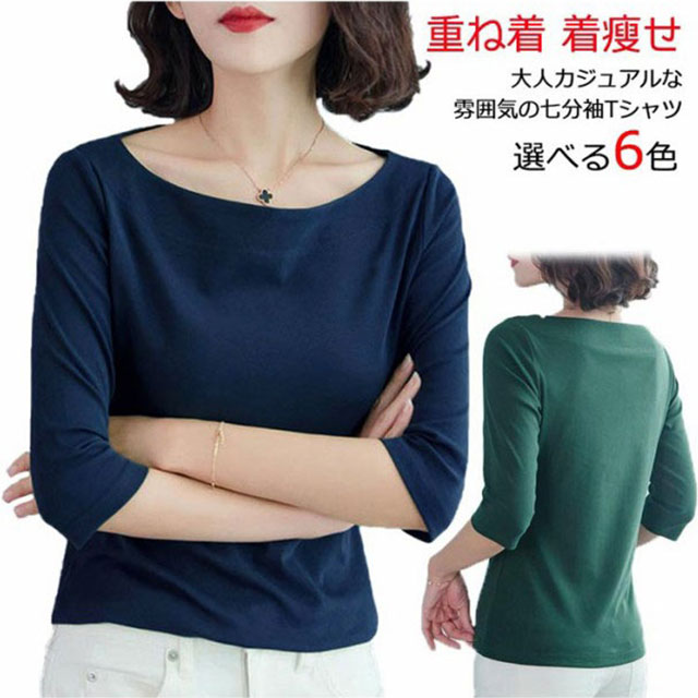 Tシャツ レディース 七分袖 五分袖 トップス カットソー 七分袖tシャツ ボートネック 大人 女性 インナー 重ね着 無地 シンプル カジュアル 大きいサイズ 着瘦せ 上品 トップス 通勤 OL オフィス プレゼント ギフト 送料無料 20代 30代 40代
