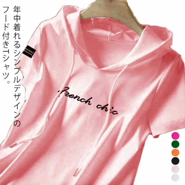パーカー tシャツ レディース 半袖 パーカー フード付きtシャツ プルオーバー トップス 薄手 春 夏 フーディー Tシャツ プリント ロゴ フード カットソー テーシャツ シンプル 大きいサイズ カジュアル 送料無料
