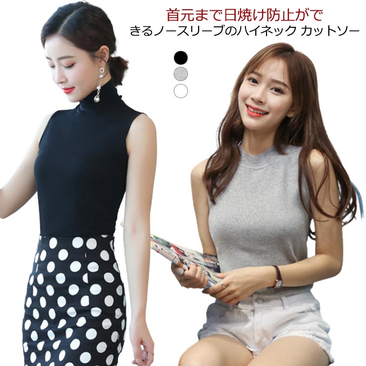 ノースリーブ ハイネック tシャツ レディース トップス タートルネック uvカット 紫外線対策 日焼け対策 薄手 首 インナー タンクトップ 無地 カットソー フィット 春 夏 サマー 白 黒 レイヤード 重ね着 ストレッチ ボトルネック シンプル ネックガード