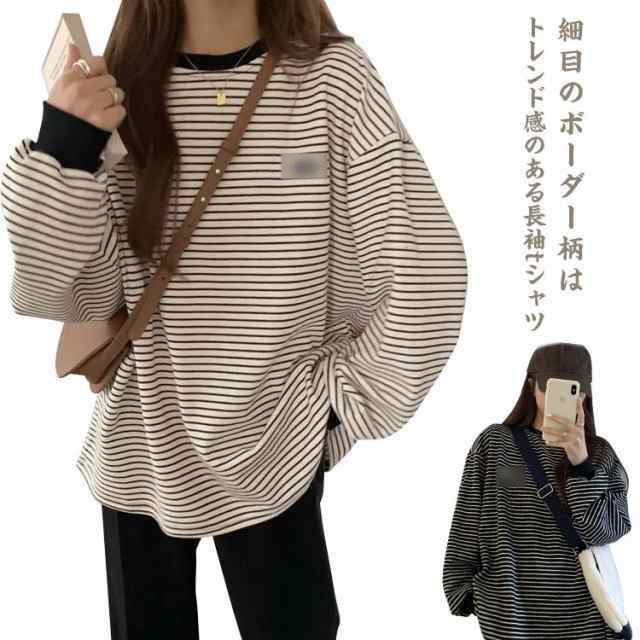 Tシャツ レディース 長袖 カットソー クルーネック ボーダー柄 カジュアル トップス 女性用 ロンT 長T シンプル ゆったり 大きいサイズ プルオーバー インナー ティーシャツ ティシャツ 可愛い 秋 春 春服 送料無料