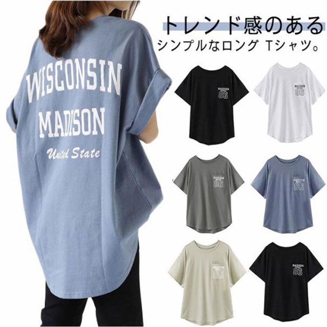 送料無料 トップス レディース 半袖 tシャツ ロゴtシャツ バックプリント オーバーサイズ 着痩せ 韓国風 クルーネック カットソー ゆったり 大きめ 体型カバー プルオーバー おしゃれ シンプル カジュアル アウトドア 2タイプ こなれ感 ストリート 女性 10代20代30代40代