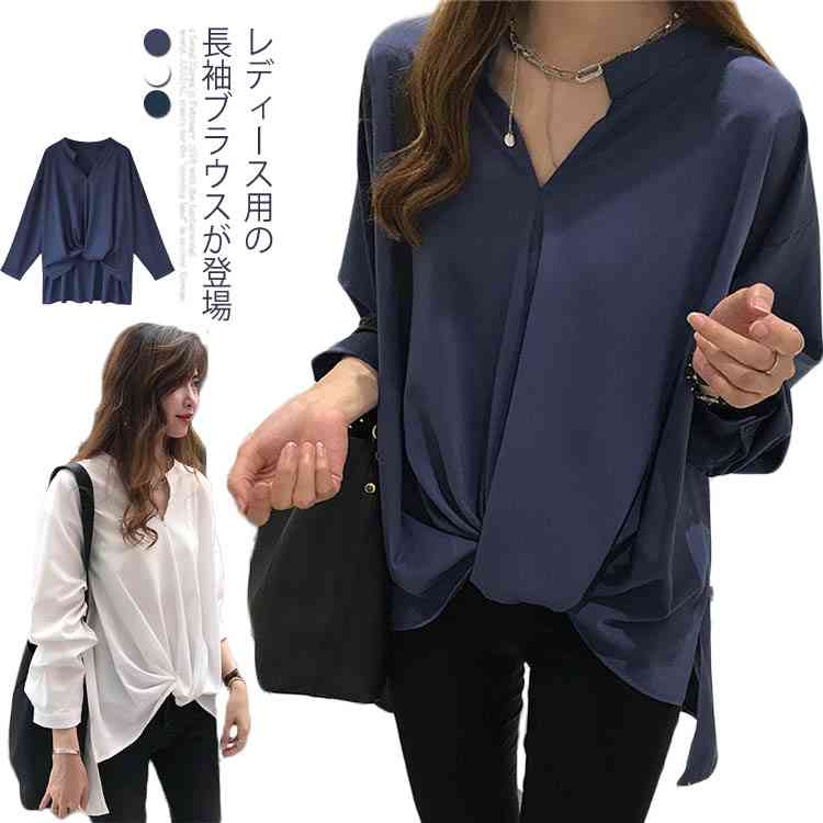 長袖ブラウス ゆったり レディース シャツ 長袖 Vネック ユニックデザイン 女性用 トップス プルオーバー 薄手 春秋物 夏物 オシャレ 通勤