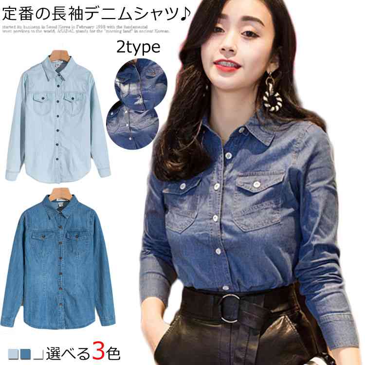 シャツ デニムシャツ レディース トップス 長袖 春秋 カジュアル 女子