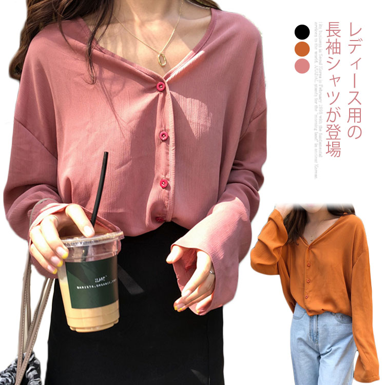 ブラウス 長袖 レディース シャツ ゆったり Vネック カジュアルシャツ 女性用 長袖ブラウス レトロ トップス 薄手 オシャレ 通勤