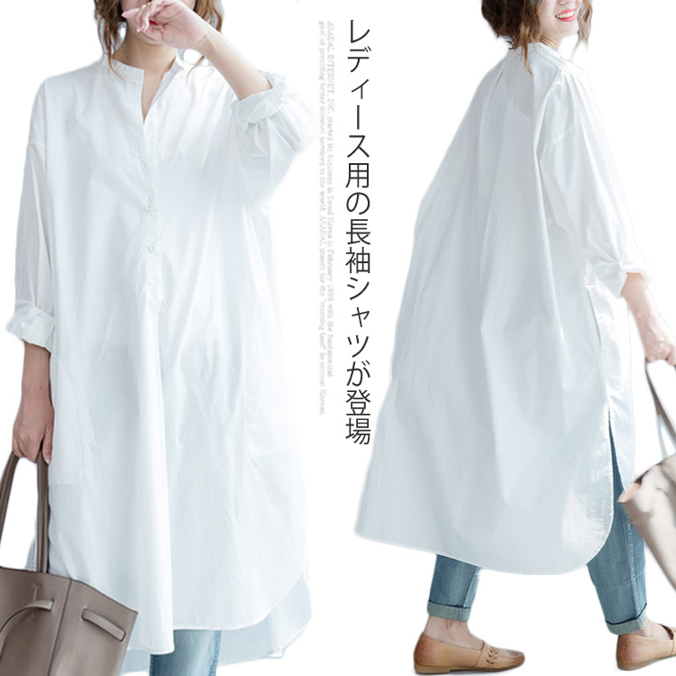 シャツ 長袖 レディース ロングシャツ ゆったり シャツワンピ ブラウス ワイシャツ 爽やか 女性用 トップス ロング オシャレ シンプル
