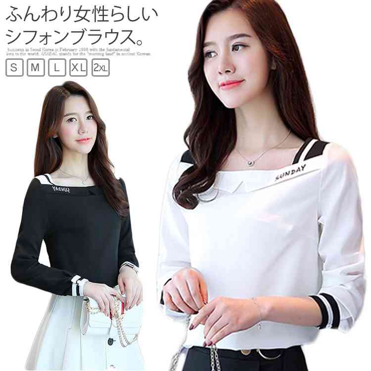 オフショルダーブラウス シフォンブラウス きれいめブラウス トップス レディース 長袖 無地 おしゃれ 春夏 キャンディースリーブ