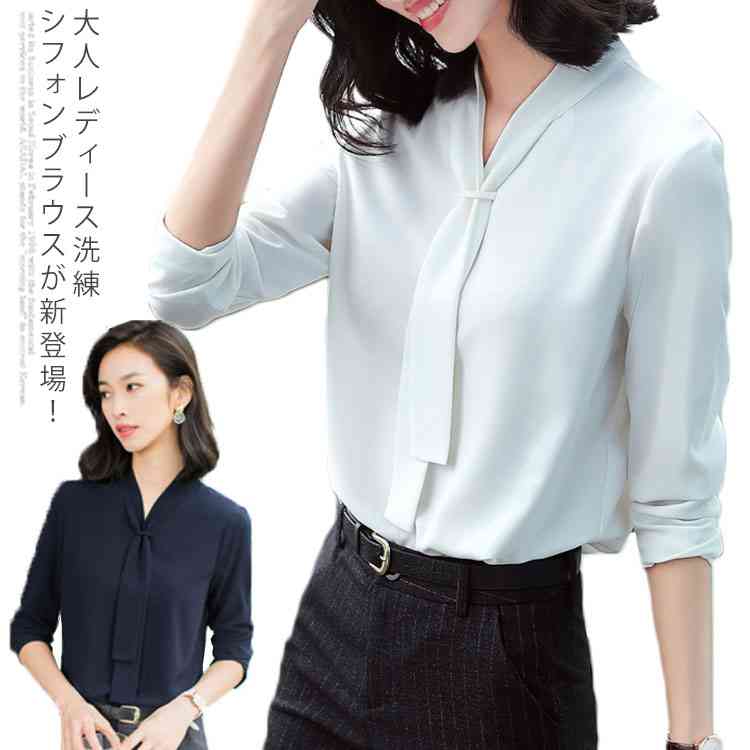 ブラウス レディース シフォン シャツ 長袖 OL オフィス フォーマル vネック スキッパー 面接 入学式 卒業式