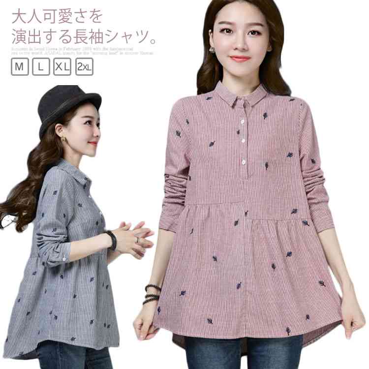 シャツ ブラウス レディース トップス 長袖 春服 大人可愛い 大きいサイズ ゆったり 総柄 ストライプ シンプル 大人カジュアル