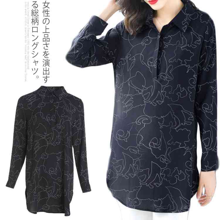 シャツ ブラウス レディース トップス 大きいサイズ ゆったり 総柄 着痩せ OL オフィス 長袖シンプル 薄手 羽織 エレガント 細見え スリット入り