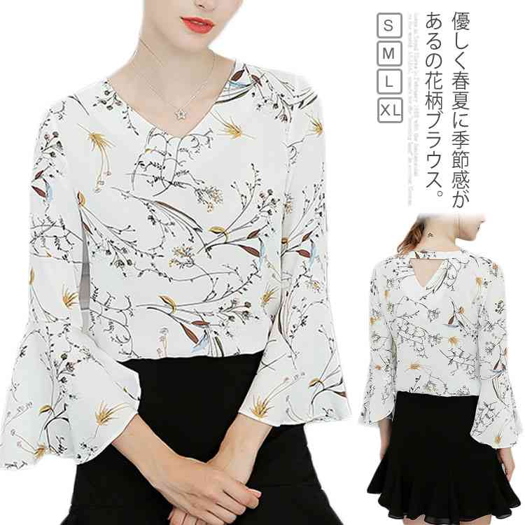 シャツ ブラウス レディース シフォンシャツ トップス 大きいサイズ ゆったり 花柄 OL オフィス 長袖 シンプル 薄手 羽織 エレガント ボリューム袖