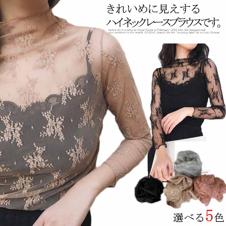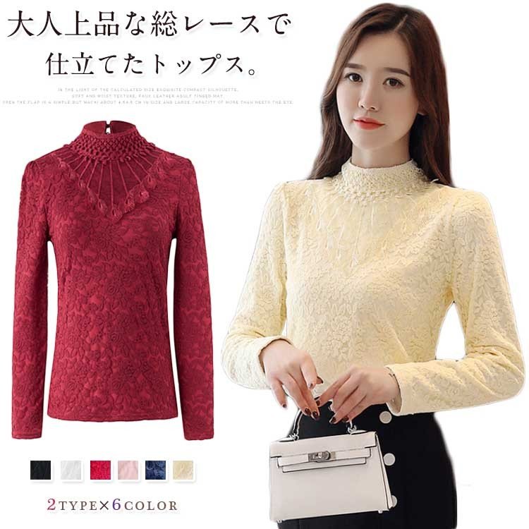 S-5XLサイズ!ハイネック レースブラウス 総レーストップス シャツ ブラウス 裏起毛ブラウス 立ち襟 レース トップス 秋冬 防寒 インナー 大きサイズ 大人 女性 上品