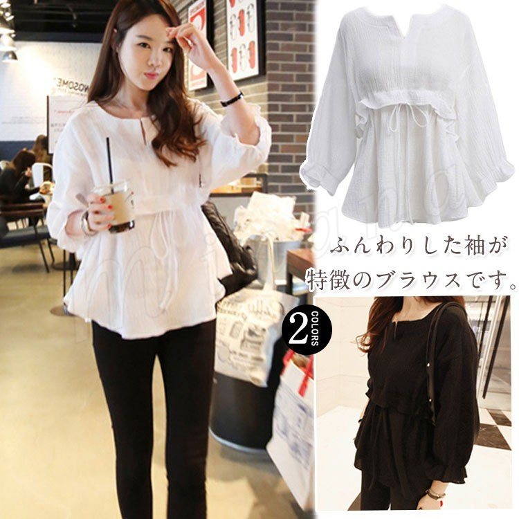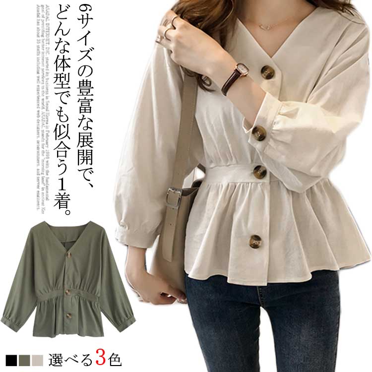 メール便送料無料 ブラウス トップス シャツ 春 レディース 長袖 バルーン袖ブラウス 全3色 M-4XL Vネック OL おしゃれ 可愛い