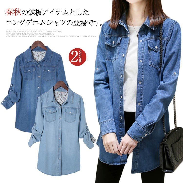 春秋カジュアルstyleの鉄板!デニムアウター ダンガリーシャツ レディース デニムロングシャツ デニムシャツ デニム シャツ 羽織物 ロング丈 長袖 秋服 秋物 ライトアウター コート