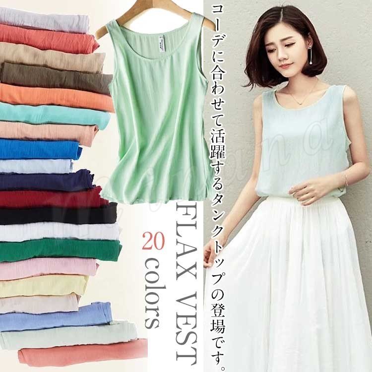 新色追加で全20color!リネンタンクトップ レディース タンクトップ 綿麻 麻 無地 タンク インナー ノースリーブ 夏服 大きサイズ 大人 可愛