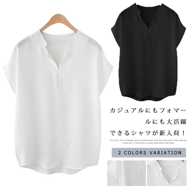 スキッパーシャツ Vネック シャツ ブラウス シフォン