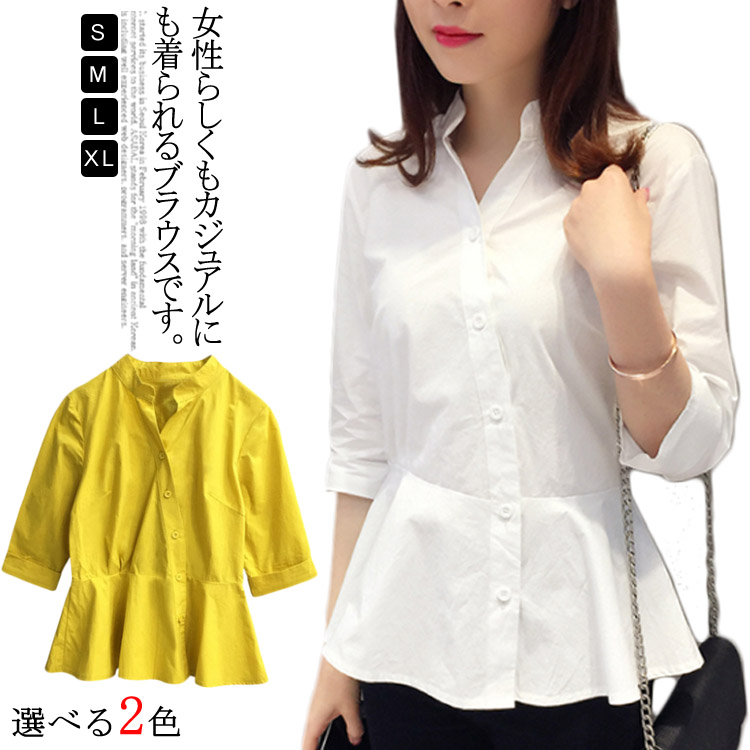 シャツブラウス 7分袖 リネンブラウス レディース 春夏 おしゃれ オフィス 麻風ブラウス カットソー かわいい ゆったり トップス 通勤 オフィスカ