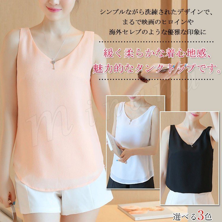 タンクトップ ブラウス レディース Vネック シフォンブラウス vネック ノースリーブ セクシー 袖なし ルーズシンプル 素敵 快適 おし