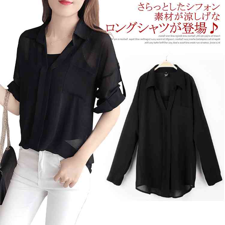 大きサイズ ロールアップ可 紫外線対策 シフォンシャツ×キャミソール セット カジュアルシャツ ロングシャツ シャツブラウス 長袖 シンプル無地 ロン