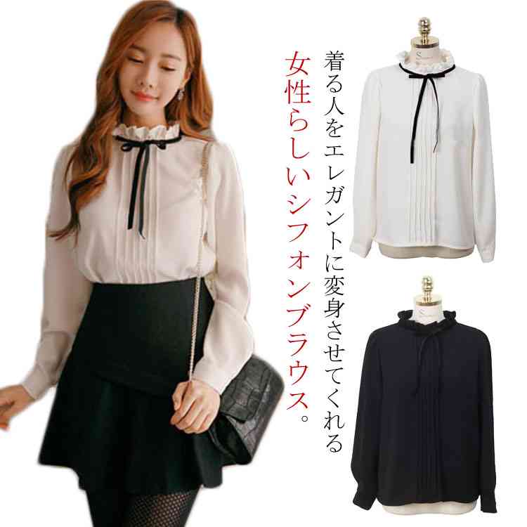 シフォンブラウス シャツ ブラウス ボウタイ付き レディース 長袖 フリル襟 トップス シフォン 大人 可愛い 女性用 春 夏 無地