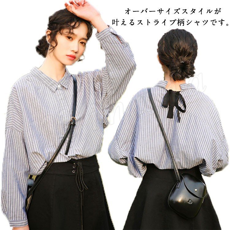 シャツブラウス レディース ストライプ柄 ゆるシャツ