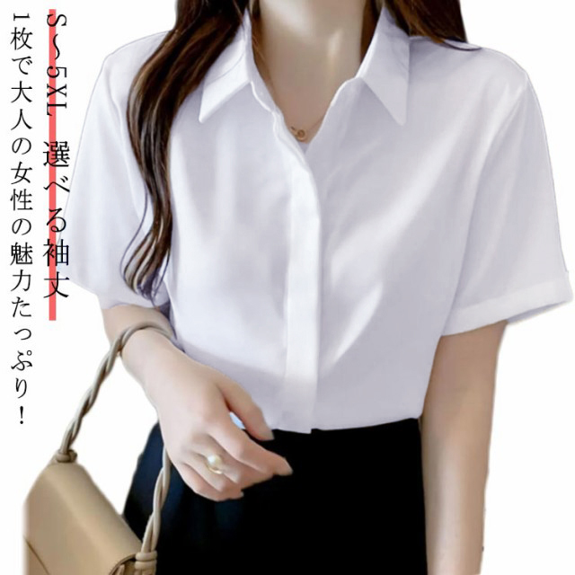 美しく着れる ワイシャツ大きいサイズ 白 黒 長袖 半袖 S-8XL 白シャツ スーツ 半袖シャツ スーツ ブラウス インナー オフィス ビジネス 事務服 制服 ボタン ゆったり ゆるシャツ ぽっちゃりさん OL 会社 通勤 ワイシャツ白 ホワイト 送料無料