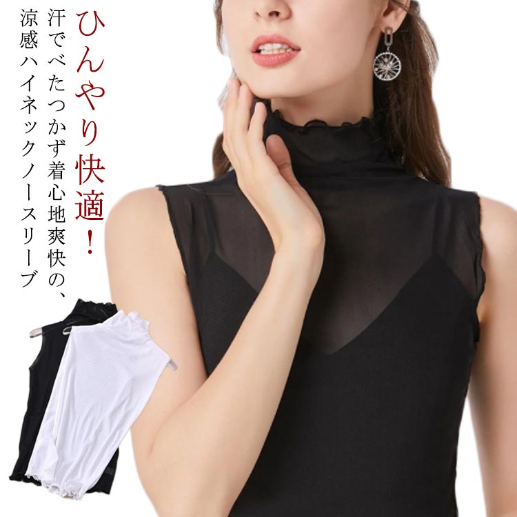 ノースリーブ ハイネック 涼しい タンクトップ レディース サマー トップス シアートップス ひんやり おしゃれ 伸縮性 紫外線対策 透け感 肌見せ 薄手 きれいめ インナー 春夏 重ね着 無地 上品 通勤 OL 日常 レイヤード セクシー 送料無料