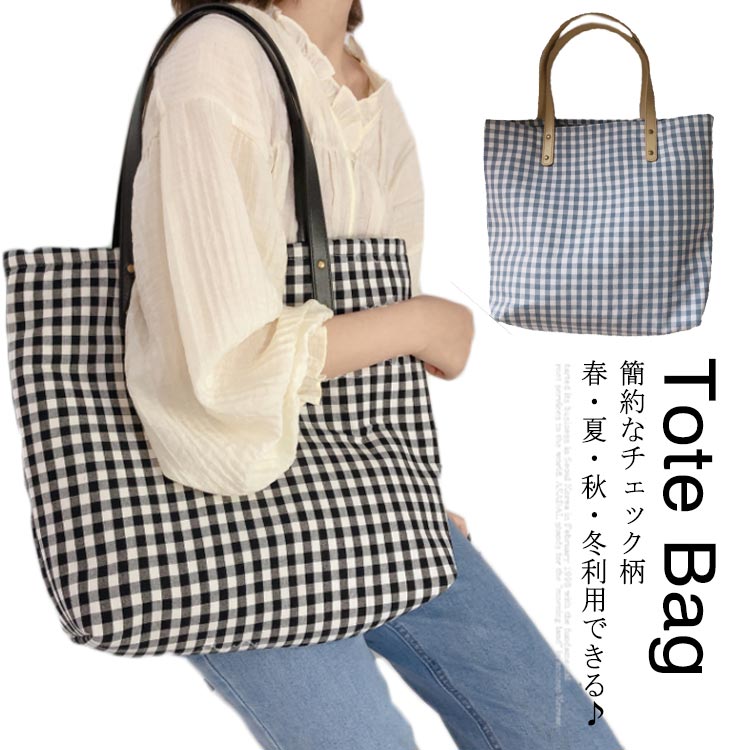 トートバッグ バッグ キャンバスバッグ 肩掛けバッグ エコバッグ マザーズバッグ ショルダーバッグ かばん 鞄 ファッション カジュアル チェック柄 肩掛け 斜めがけ 手持ち 大きめ 大人 可愛い 学生 厚手 大容量 通学 通勤 出張 お買い物 韓国風