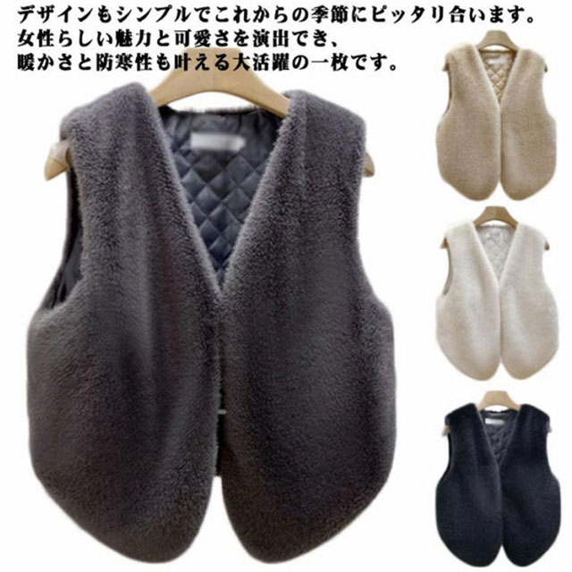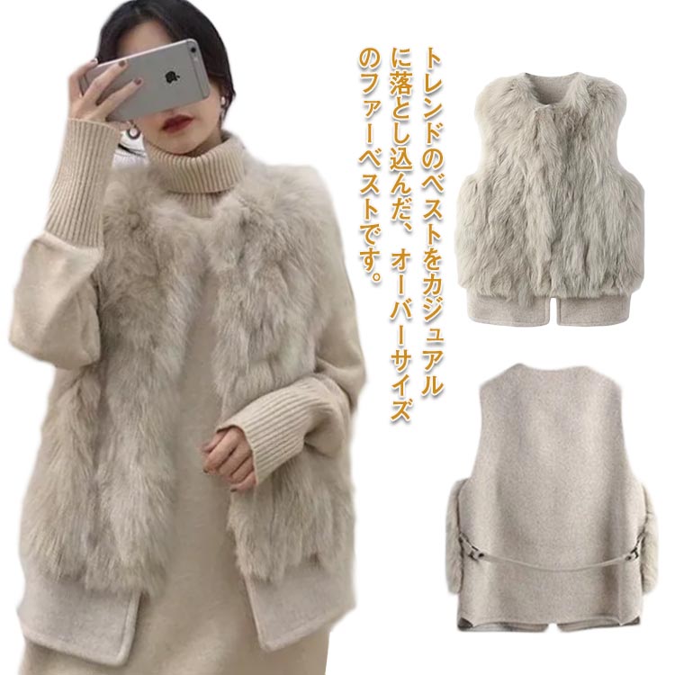 ベスト レディース ファーベスト フェイクファー エコファー ライトアウター ショート丈 ノーカラージャケット ファージャケット ノースリーブ ジレ レイヤード 重ね着 ミドル丈 羽織 秋 冬 春 ふわふわ もこもこ ベージュ 韓国ファッション きれいめ カジュアル 送料無料