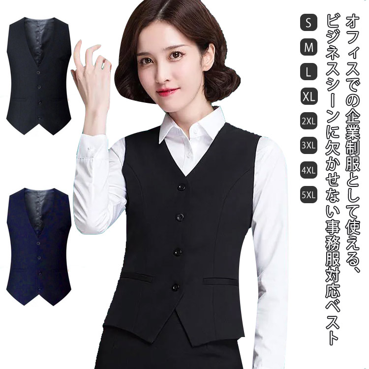 ベスト レディース フォーマルベスト 黒 大きいサイズ トップス 制服 事務服 飲食店 ユニフォーム フォーマル ビジネス 前開き 細身 企業 通勤 オフィス 入学式 七五三 OL カフェ ソムリエ ホテル ブラック ネイビー 送料無料
