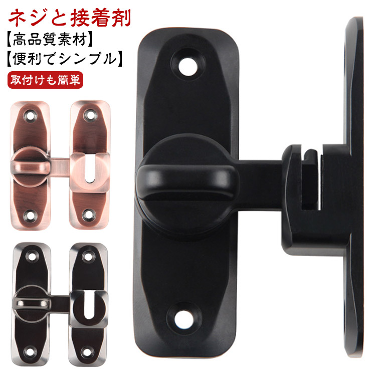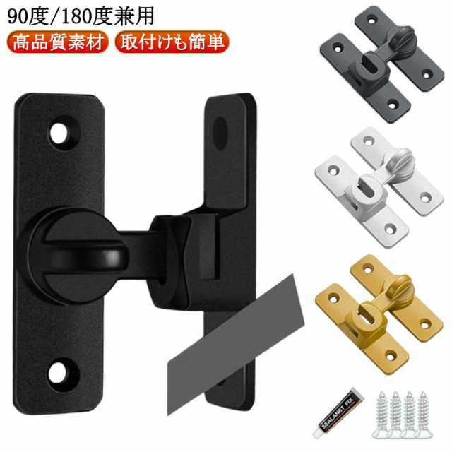 【90度/180度兼用】引き戸 鍵 後付け 穴あけ不要 ドアロック 亜鉛合金 ドア留め金ロック 回転式 スライディングドア ストッパー フリップラッチ 引き戸 鍵 ロック 防犯 部屋 窓 玄関用 ドアバックル 引き戸用鍵 窓ロック 扉ロック キャビネットロック