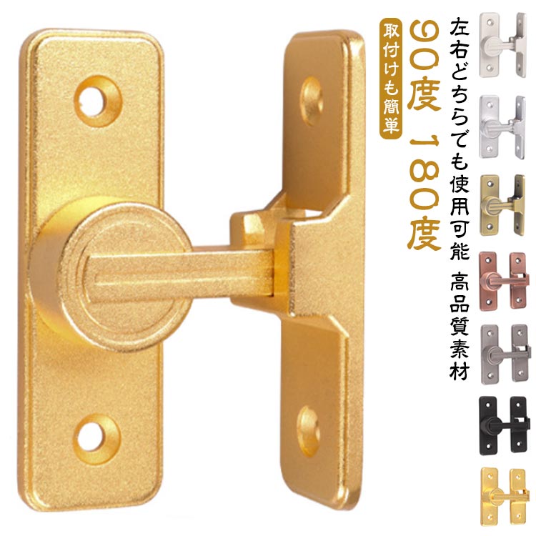 引き戸 鍵 後付け ドアロック【90度/180度兼用】ドアバックル 亜鉛合金 ドア留め金ロック 後付け 回転式 フリップラッチロック 引き戸用鍵 スライドロック 窓ロック とびらロック 部屋 窓 取り付け簡単 穴あけ不要 7色