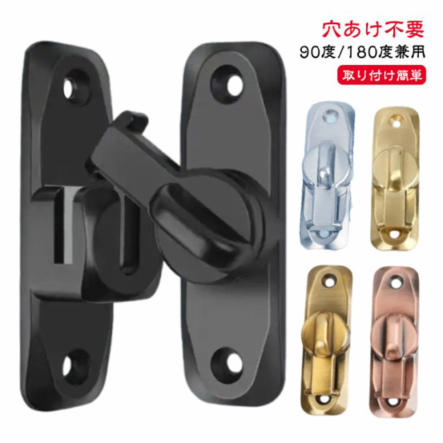 ドアロック 引き戸 鍵 後付け 穴あけ不要 90度 180度 引き戸用鍵 亜鉛合金 ドア留め金ロック 後付け 回転式 フリップラッチロック スライドロック 窓ロック とびらロック 部屋 取り付け簡単 選べる7色