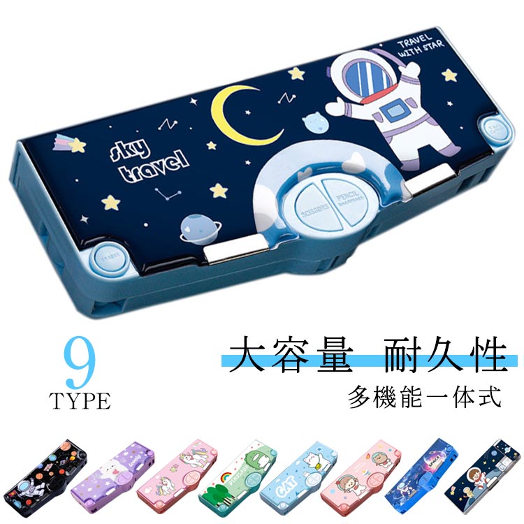 ペンケース 筆箱 ふでばこ ぼたん筆箱 鉛筆削り付き 両面開き ハサミ 消しゴム 物差し テープ収納リング 筆入れ 時間割表 小物入れ 大容量 多機能 軽量 耐久性 マグネット コンパクト 男の子 女の子 小学生 小学校