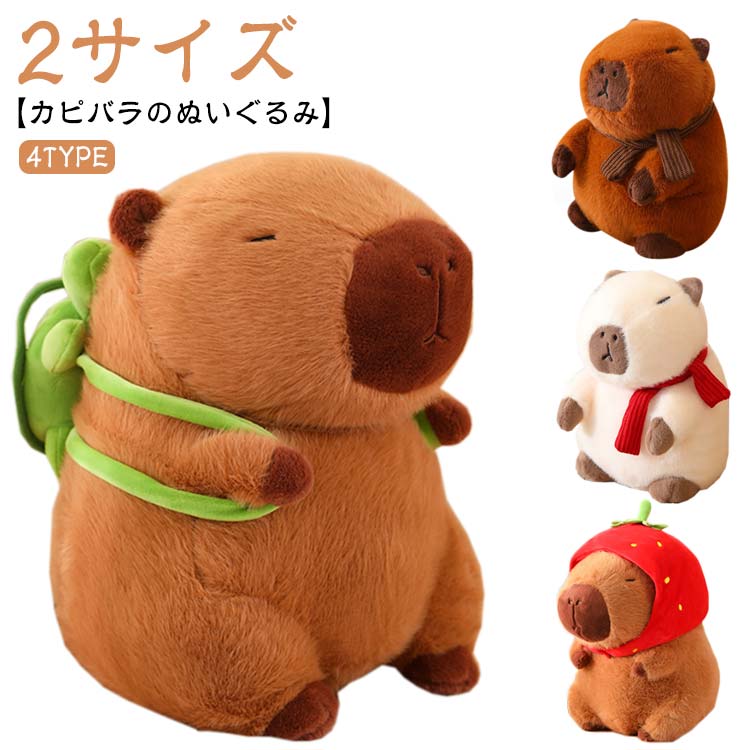 カピバラ ぬいぐるみ 動物 抱き枕 可愛い プレゼント 誕生日 子供 友達 ギフト かぴばら かわいい もこもこ インテリア 店飾り 癒し カメカバン付き いちご帽子付き ふわふわ もっちり 人気 25cm 35cm バレンタインデー