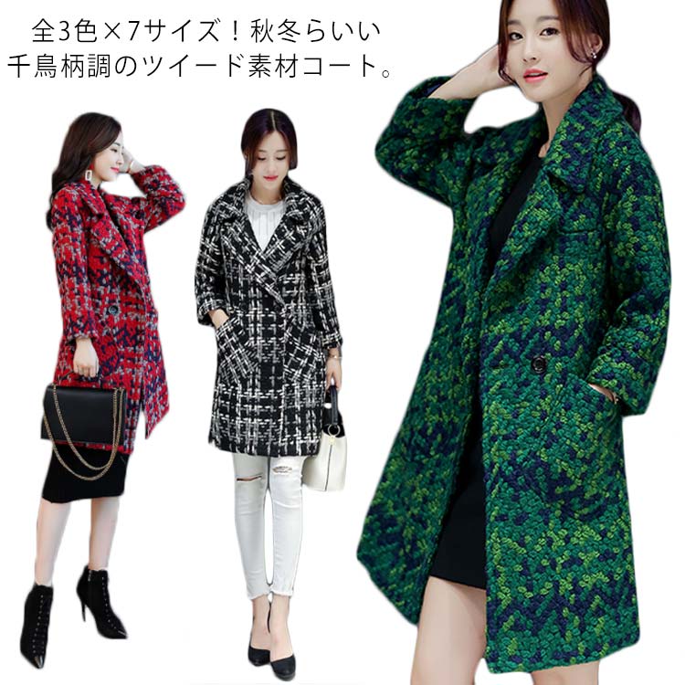 全3色×7サイズ!ラシャコート ツイードコート レディース ロングコート ツイード アウター コート ミディアム ロング 厚手 大きサイズ 秋冬 冬物 冬服 通勤 上品
