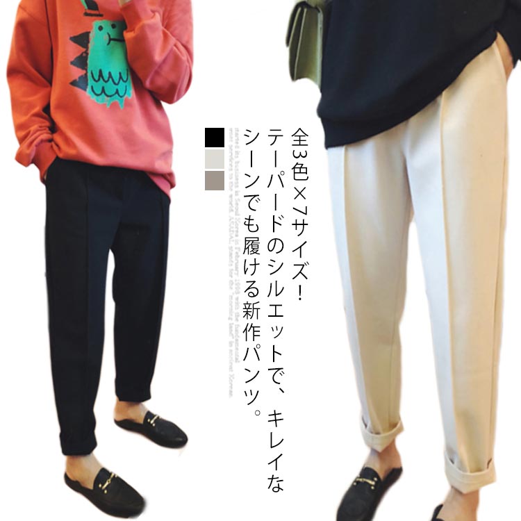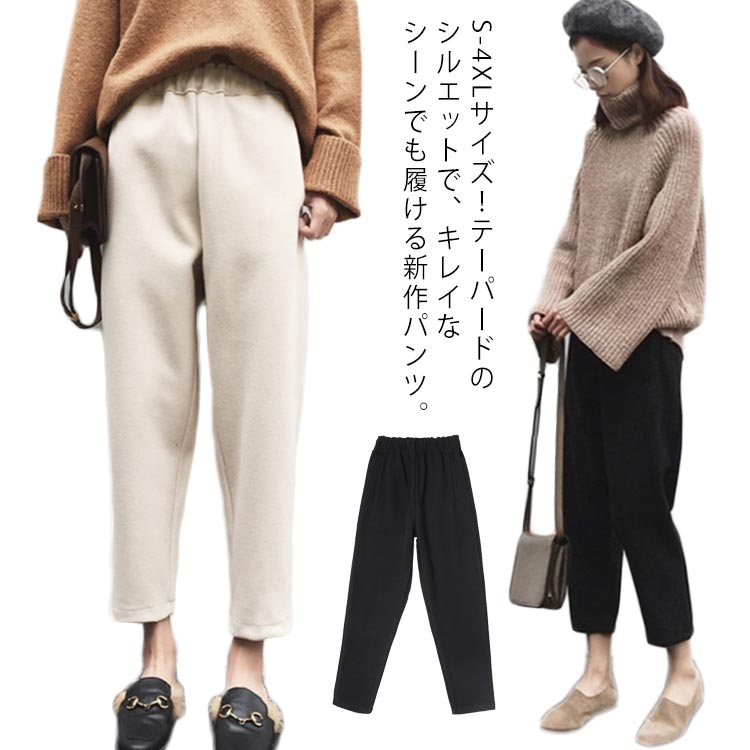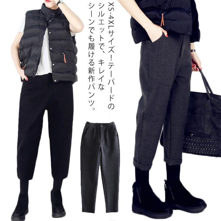 全3色×7サイズ!テーパードパンツ レディース 秋冬 ボトムス 9分丈 サルエルパンツ テーパード パンツ ウエストゴム カジュアル キレイめ 厚手 無地 通勤 楽チン