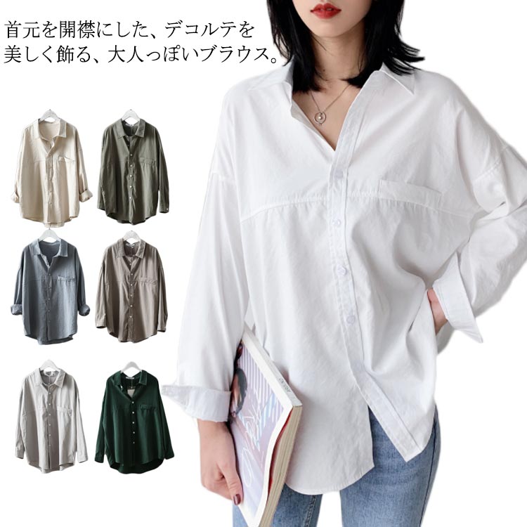ブラウス シャツ レディース 開襟 無地 トップス ゆったり 長袖 大きいサイズ シンプル キレイめ 大人上品 体型カバー 通勤 秋冬新作 お洒落