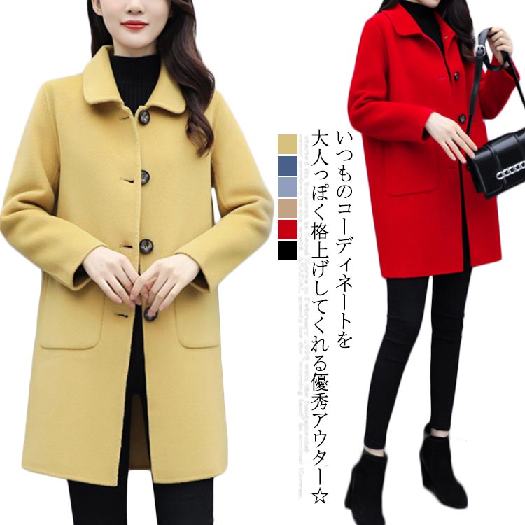 全4色×5サイズ!アウター コート レディース メルトンコート ピーコート Pコート ハーフ丈 ミドル丈 冬服 秋服 通勤 無地 大人 上品