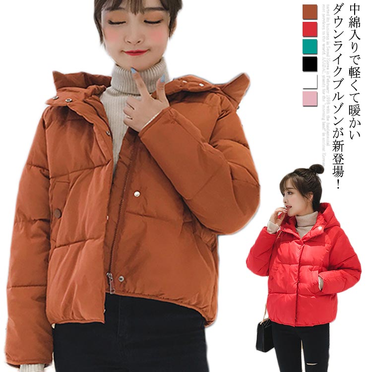 中綿ジャケット ショート丈 レディース アウター フード付き ブルゾン ジャケット 着痩せ 防寒 大人可愛い あったか 暖かい カラバリ シンプル お洒落